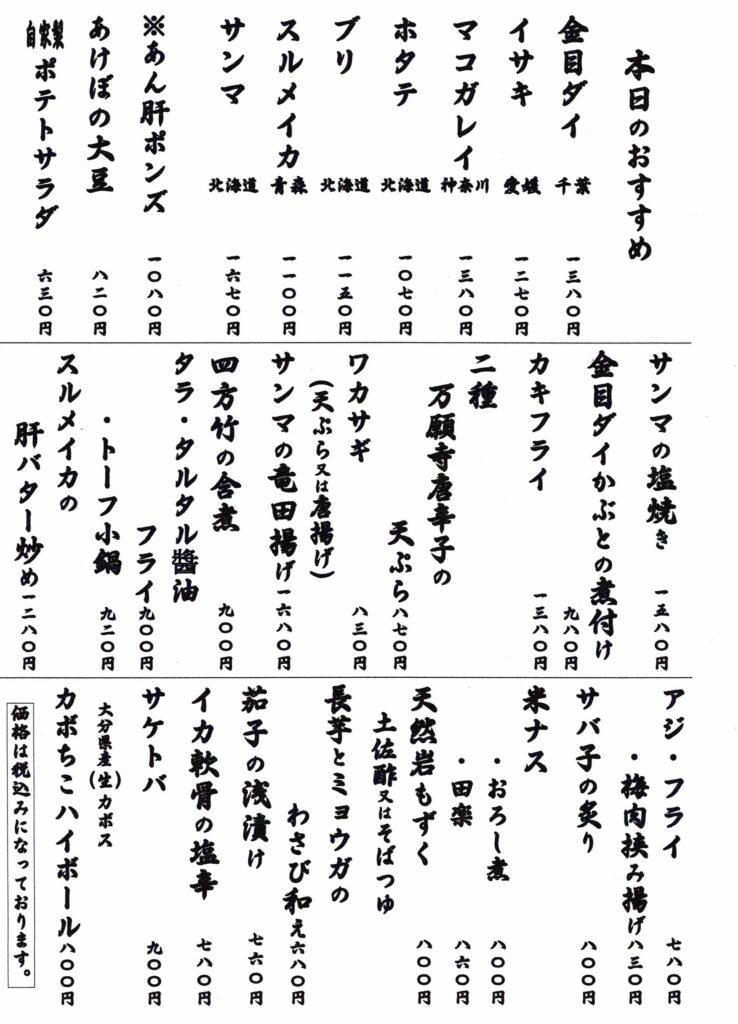 新鮮、且つ安全なものをお出しするため、メニューは毎日その日一番のものと入替えております。